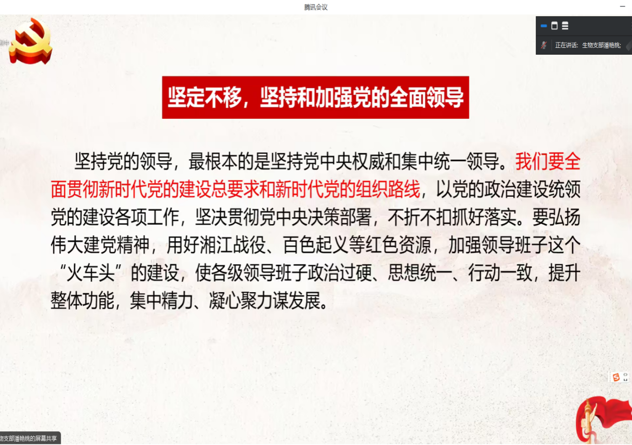 为深入学习宣传贯彻习近平总书记视察广西时的重要讲话精神,点点taptap官方网站生物专业员工党支部于1月11日19:30以线上会议的形式开展了“深入学习宣传贯彻习近平总书记视察广西时的重要讲话精神”主题党课培训。本次会议参会人员为生物专业员工党支部全体党员,此次培训课程由党支部副书记潘艳桃主持。