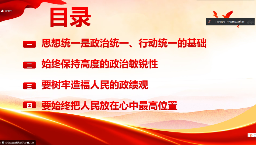 为深入学习宣传贯彻习近平在中央政治局专题民主生活会上的讲话内容,点点taptap官方网站生物专业员工党支部于1月23日19:30以线上会议的形式开展了“习近平在中央政治局专题民主生活会上的讲话”主题党课培训。本次会议参会人员为生物专业员工党支部全体党员,此次培训课程由党支部副书记潘艳桃主持。
