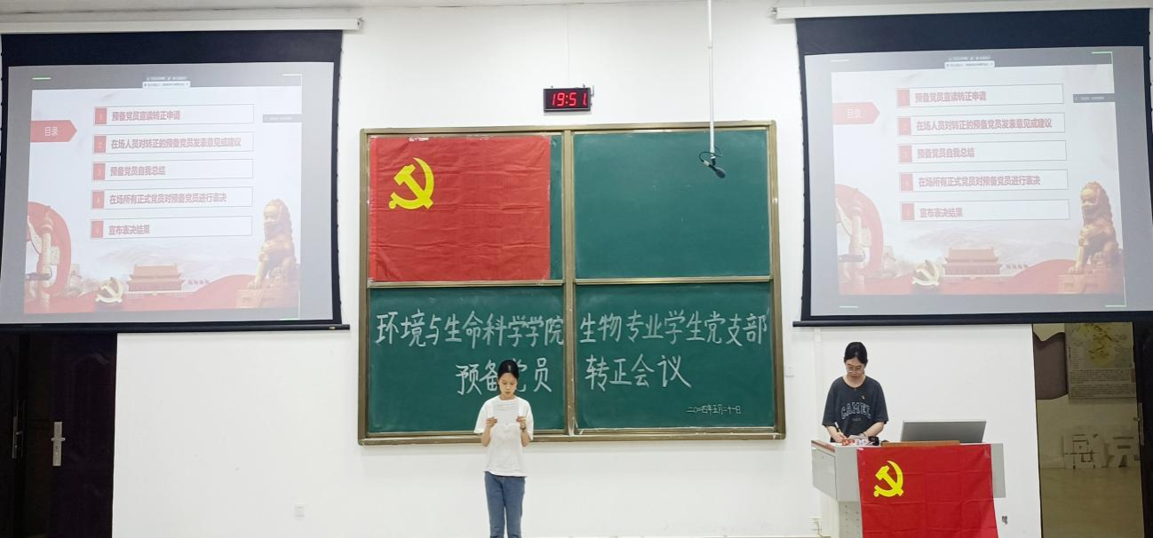 本次会议由党支部书记刘雅楠主持并介绍会议流程,会议讨论关于赖红霞等十六名同志是否能按期转为中国共产党正式党员。首先,十六名预备党员依次上台宣读转正申请书,向大会汇报本人在预备考察期间思想、学习、工作等方面的情况,阐述并反思自身的进步与不足,传递了永葆初心、不断努力奋斗、严格要求自己的精神,并表达了按期转为中共正式党员的愿望。随后,由参会的党员同志们对上台发言的同志提出意见与建议,并给予其厚望。十六名预备党员结合自身实际情况及现场同志的建议进行自我总结。最后,全体正式党员进行无记名投票表决,一致同意赖红霞等十六名预备党员按期转为正式党员。