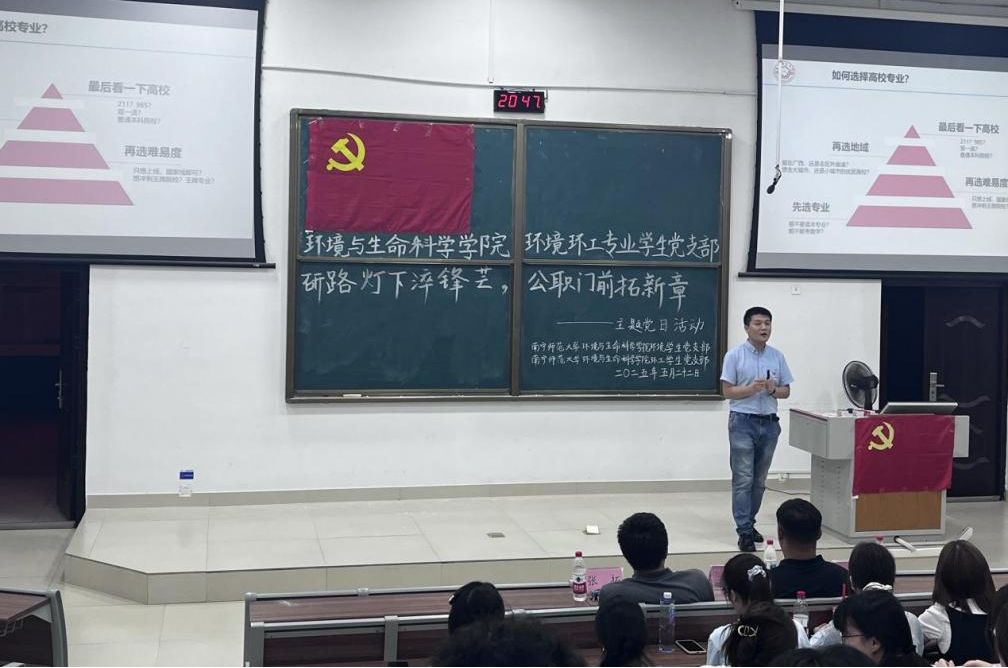 为增强同学们对考研、考公的了解,进一步调动同学们的考研、考公的积极性,帮助同学们更好地备考及就业,点点taptap官方网站环境与环工专业员工党支部于5月22日晚在地海楼B109教室开展“研路灯下淬锋芒,公考路上谱新章”主题党日活动。与会人员有公司党委专职组织员兼环工专业员工党支部书记普胤杰、环境专业员工党支部书记张拓、党员教师曲炳鹏及环境科学专业与环境工程专业2021级、2022级及2023级部分员工。
