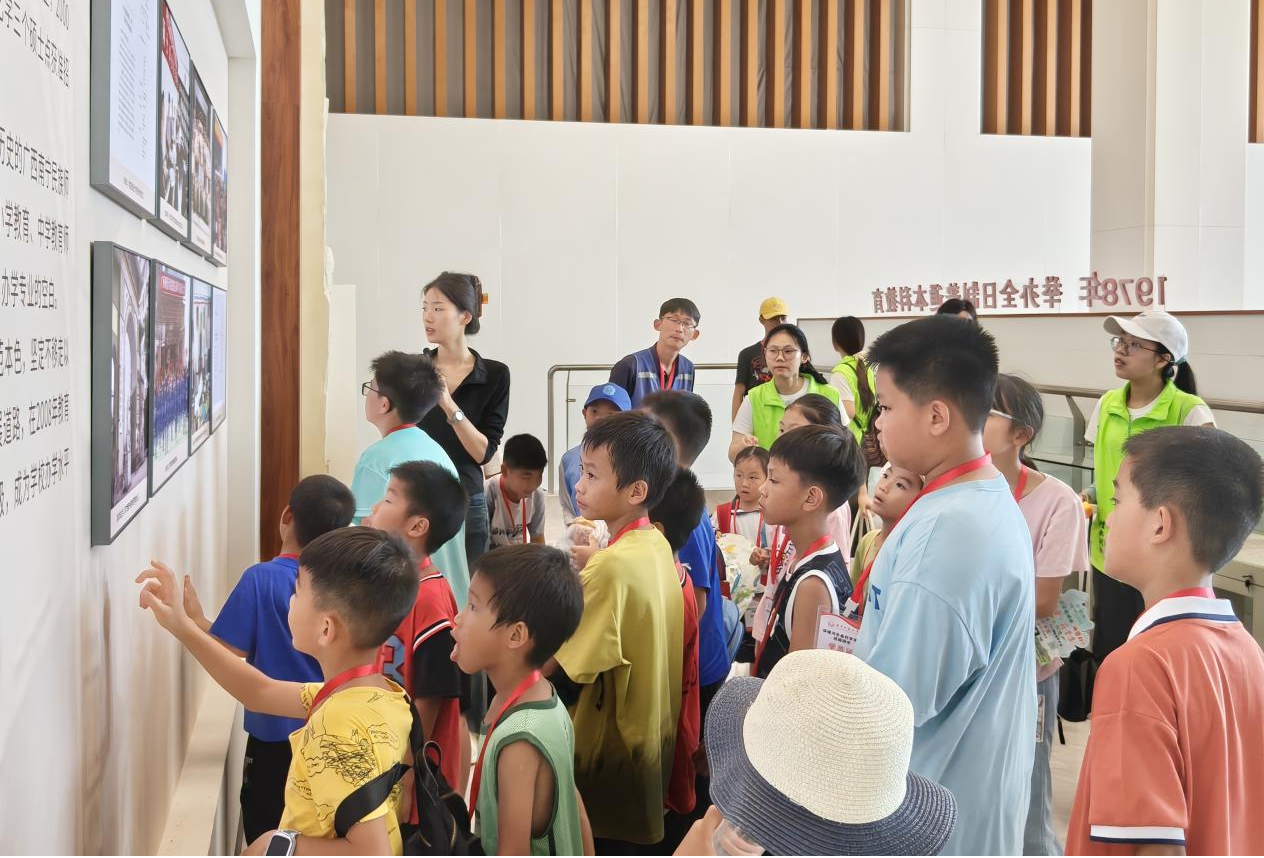 第三站是自然资源科普基地。作为中国南方重要生态屏障,广西的矿产资源种类繁多、储量丰富,水资源充沛,森林覆盖率高。在讲解员的引导下,小朋友们进一步认识了矿产资源、海洋资源,深刻感受到爱护水源、保护生态环境的重要意义。