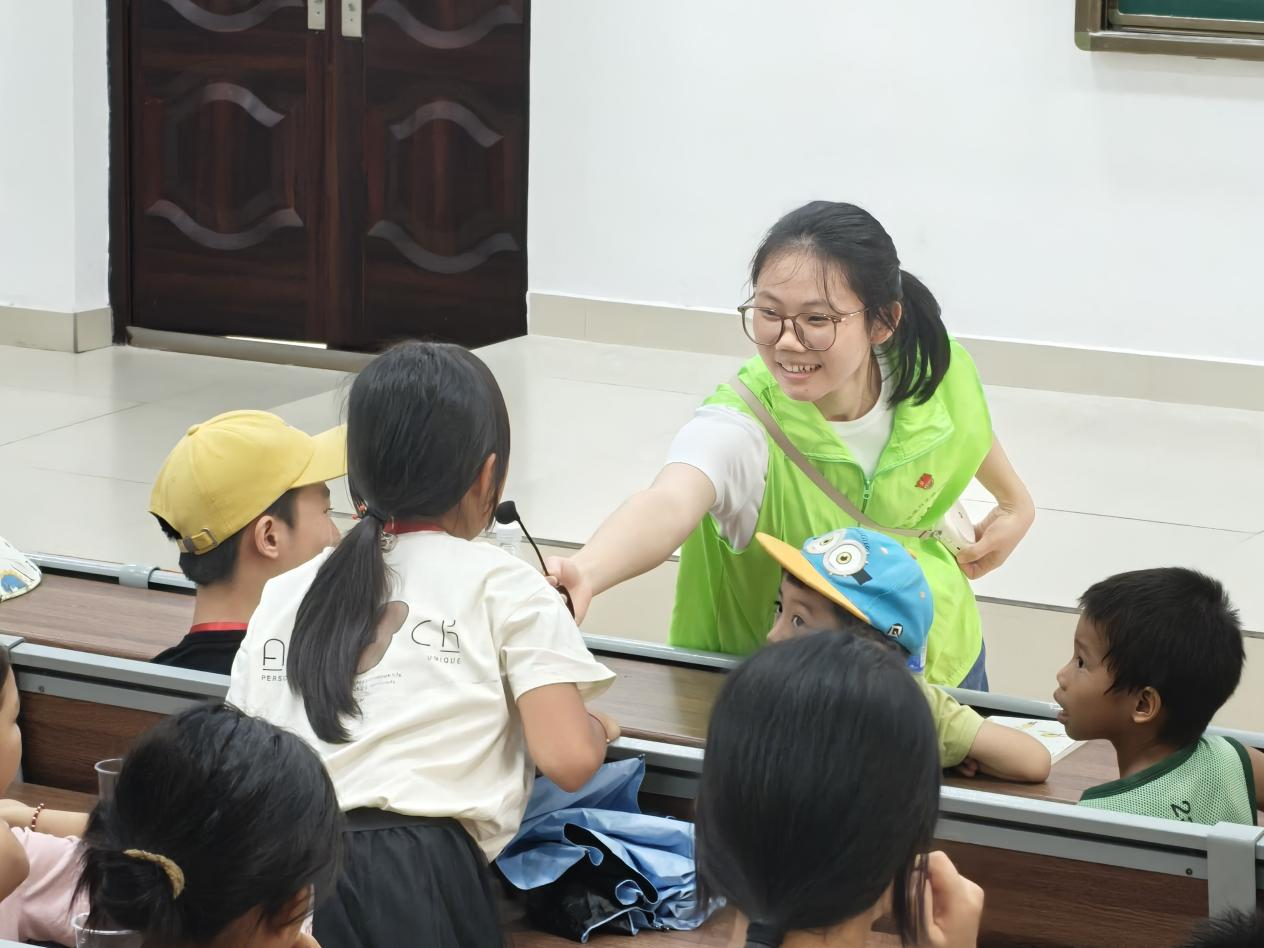 最后,志愿者们组织小朋友来到地海楼B109教室,开展了一场别开生面的夏日小课堂。课堂上,志愿者先用生动的案例讲解了有趣的生物科普小知识,为了让小朋友们掌握夏日防护技能,志愿者通过情景模拟演示了溺水急救的正确步骤、中暑后的应对方法,还分享了防蚊虫叮咬的实用小窍门。这堂轻松愉快的课程,让孩子们不仅学到了丰富的知识和实用技能,更在与党员的互动中,感受到了来自党员的真诚付出与温暖关怀。
