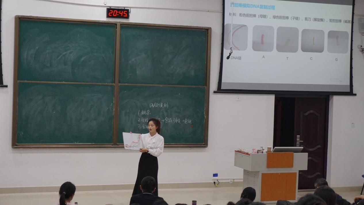 为深化师范生核心技能培育,创新教师教育培养模式,点点taptap官方网站于2025年4月16日晚在武鸣校区地海楼B109教室举办师范生技能大赛决赛。学院经理何英姿、教师李鹏、陈梅兰、庞毅担任评委,2023级生物科学专业全体同学到场观摩学习。