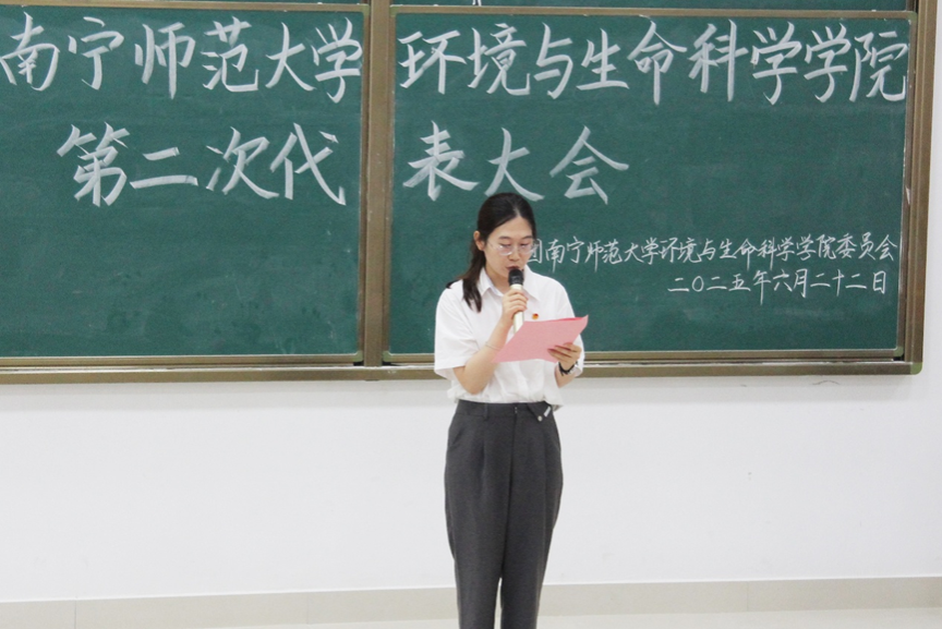 校团委区丽媛书记致贺词。她指出,此次大会是贯彻重要精神、推动学院团学工作发展的青春盛会。她肯定了学院团委在思想引领、基层团务、特色活动开展等方面的工作成果。对新一届团委委员,她寄予厚望,并号召他们以此次会议为起点,团结带领团员青年为学校和学院高质量发展贡献青春力量。
