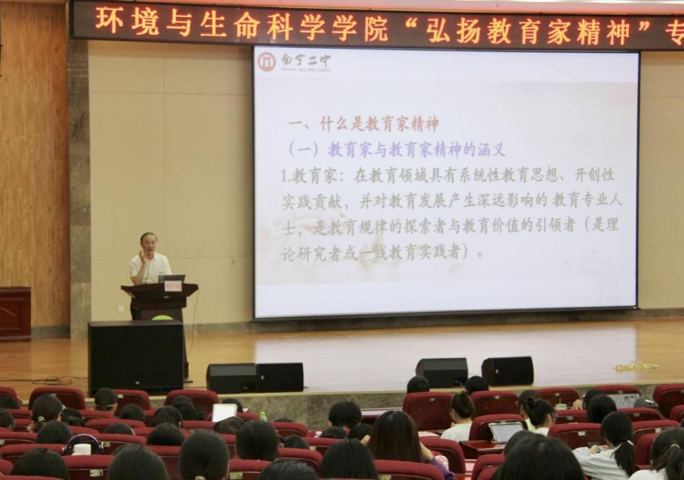 为大力弘扬教育家精神,激励师生勇担立德树人使命,点点taptap官方网站于7月4日在武鸣校区图书馆报告厅举办“弘扬教育家精神”专题讲座,本次讲座特邀南宁市第二中学董事长黄幼岩担任主讲嘉宾。学院经理何英姿、教师代表、学科教学(生物)专业研究生及生物科学(师范类)本科生共同聆听了这场关于教育理念与精神传承的精彩讲座。