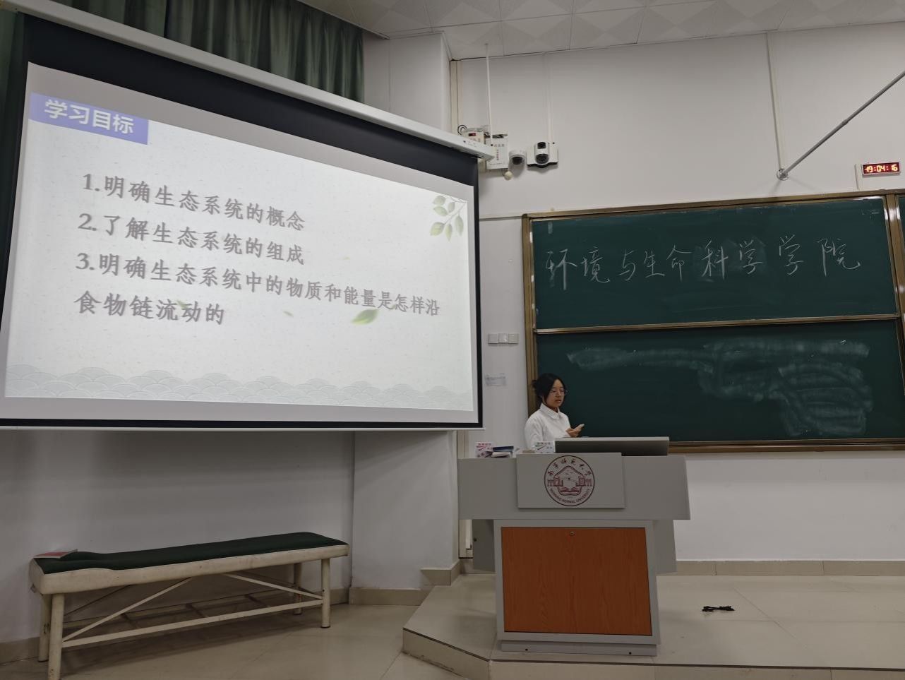 汇报会模拟真实教学场景,来自四个班级的八位实习生代表依次登台,进行了限时十分钟的模拟课堂教学展示。同学们授课内容紧扣中员工物学核心知识,涵盖了“植物体的结构层次”、“生态系统的组成”等多个重要主题,充分体现了对专业教材内容的深入理解。