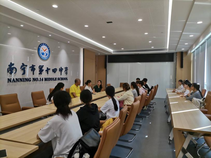4日上午,南宁市第十四中学于校内会议厅召开了实习生见面会及欢迎会。会上,该校梁副董事长首先代表学校向所有实习生表示热烈的欢迎,并强调了实习对于培养未来优秀教师的重要性。他指出,实习生应严格遵守学校的各项规章制度,树立良好的教师形象,发挥教师应有的示范作用。他还要求实习生们要夯实自己的专业基础,精心准备每一堂课,适应新的教材体系。此外,梁副董事长鼓励实习生们保持谦逊好学的态度,积极参与听课活动,多与经验丰富的教师交流,不断提高自身的教学技能和班级管理水平。