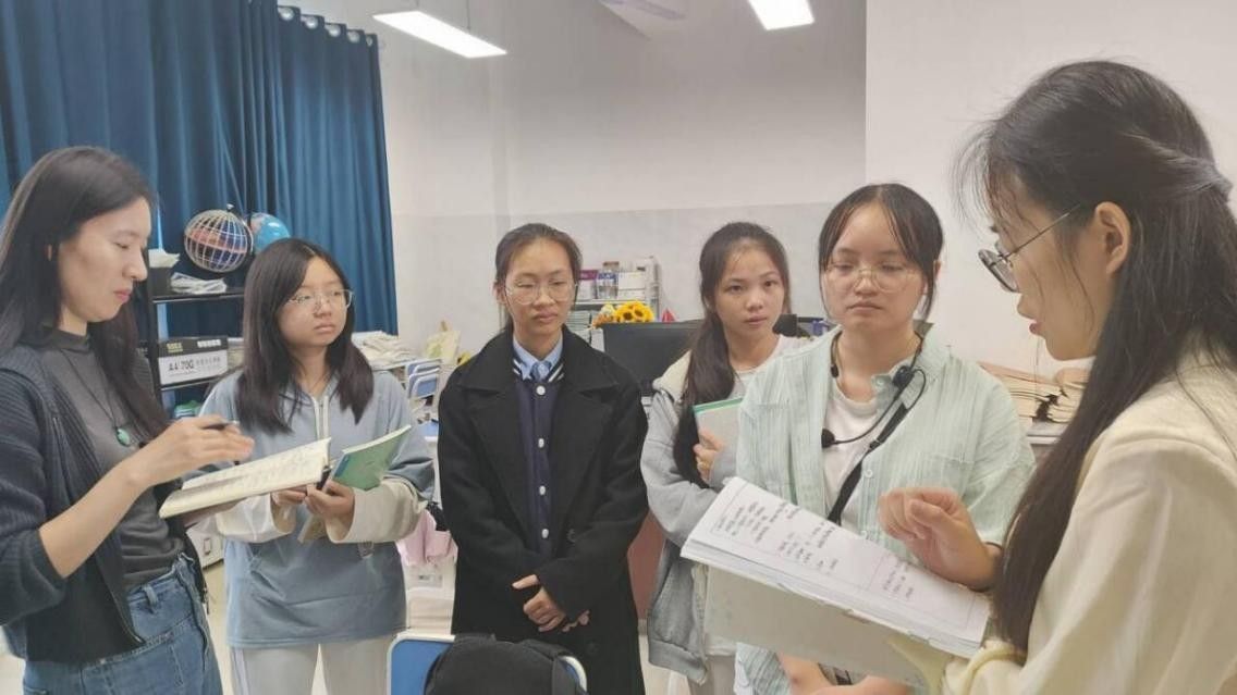 带队教师赵志娟老师专程来到兴宁二中,亲切慰问全体实习生。她详细询问了大家的生活起居、交通通勤及实习适应情况,并逐一了解每位同学在各自班级的教学与班主任工作进展。赵老师特别强调,实习生不仅要关注“如何教”,更要思考“为何教”以及“学校为何这样管理”。她鼓励同学们以研究者的视角观察学校的育人文化、管理制度与教研活动,即使暂时无法解决某些问题,也要养成记录、思考与反思的习惯。“今天的观察与记录,或许就是未来教育实践中的顿悟时刻。”赵老师的话语让实习生深受启发,也激发了大家从更高维度理解教育本质的热情。