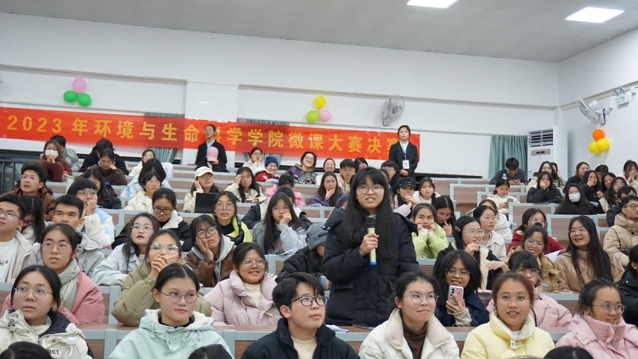本次比赛共有选手作品展示、评委点评、观看优秀作品、现场互动以及颁奖留念五个环节。在主持人介绍完评分细则后,教材组进行作品展示。《探碳》围绕当今碳循环形势作出分析,贴近生活又引人深省。《神经调节的基本方式》结合生活中反射的例子,生动形象地说明反射的原理及过程,赢得评委和观众一致赞叹。“江南可采莲,莲叶何田田。”科普组的《“荷”你共赏》唯美画面中融入对荷花结构的讲解更是将现场气氛推向高潮。每组微课视频播放完毕后,评委对其进行专业点评,予以表扬并提出需要改进之处。