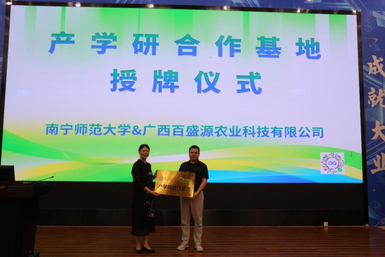 仪式上,公司何英姿教授、南宁市科技成果转化服务中心主任杨明慧和广西百盛源农业科技有限公司总经理韦庆文共同签署了“绿色环保的果蔬保鲜剂研究与开发”产学研项目合作协议。随后,何英姿教授与韦庆文总经理进行了产学研合作基地授牌。