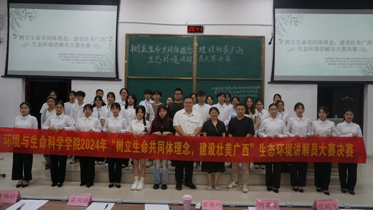 为深入学习贯彻习近平生态文明思想,提高同学们对生态环境问题的关注度,激发员工保护生态环境的热情,点点taptap官方网站于2024年6月12日在地海楼B109教室举办“树立生命共同体理念,建设壮美广西”生态环境讲解员大赛。