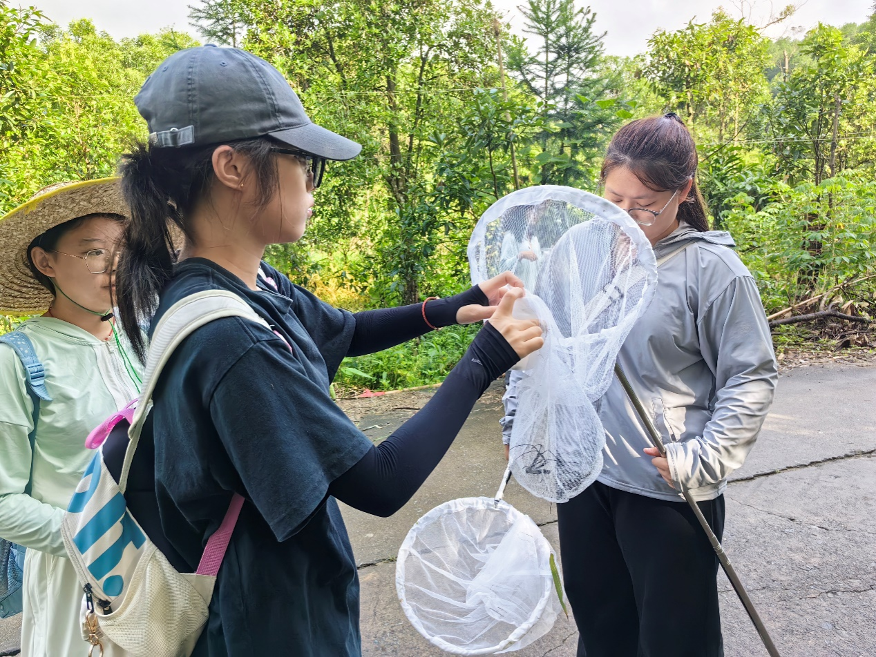 7月9日早上,师生们抵达北仑河源头景区。同学们分为湿地动物组和昆虫组两个大组,对北仑河源头的动物分布及特征展开调查。湿地动物组携带鱼竿、捕鱼网、抄网等工具,捕捞溪流中的鱼类;昆虫组带着酒精、捕虫网等工具对山间各类昆虫进行捕捉,每组都收获颇丰。