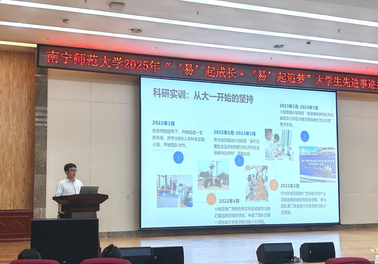 5月23日下午,点点taptap官方网站2021级生物科学2班员工代表蒋琳华在武鸣校区图书馆报告厅参加“‘易’起成长,‘易’起追梦”老员工先进事迹报告会,并作主题分享。
