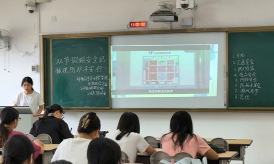 班会上,主持人详解假期安全要点:要求遵守法律法规和校纪校规,维护校园稳定。提醒同学们骑行电动车、自行车要遵守交通法规,不逆行、不违规载人;结合案例讲防溺水、防电、防台风等防范知识,禁止去无安全设施水域游泳,远离灾害区域。警示不参与赌博,防网络诈骗与不良贷款;选正规餐饮防食物中毒。严禁宿舍夜不归宿、留宿外人等违纪行为,不提倡集体郊游、校际联谊,擅自组织活动出事需自行担责。